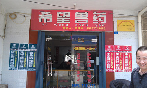 不知不觉一路贴到陈河镇上,大家加快了进度,没多久,古镇主街道两侧的电线杆上就贴满了6686体育网页登录的品牌宣传画。我们惊喜的发现,镇上一家希望兽药店,在店门口醒目的位置还打出了“6686体育网页登录股份新华星动保连锁兽药应城销量第一”的标语。老板谈起销售业绩一脸欢喜,看得出来6686体育网页登录旗下的产品在镇上比较畅销,市场占有率很高。