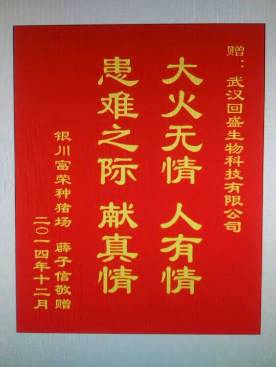 首先,请允许我代表宁夏银川富荣种猪场全体同事对6686体育网页登录公司表达最衷心的感谢!2014年12月9日深夜两点,由于线路老化种猪舍不幸失火,直接损失经产母猪88头,后备母猪200头,300多平米的种猪舍毁于一旦,经济损失达70万余。