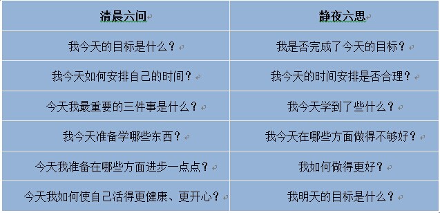 有公司管理人员专门设计了一个“员工每天自我思考六问六思”表,在很多企业运行,并且反映效果不错。