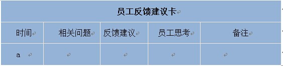 既然我们要求每一个员工都要随时发现问题,随时反馈问题,“好记性不如烂笔头”,那么设计一张表格进行记录是最好的选择。下表就是一张员工反馈问题建议卡。